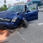 Na skrzyżowaniu al. KEN z Gandhi na Ursynowie doszło do zderzenia dwóch samochodów osobowych marki opel i audi. Po zderzeniu jedno z aut uderzyło w znaki. Nikomu nic się nie stało.