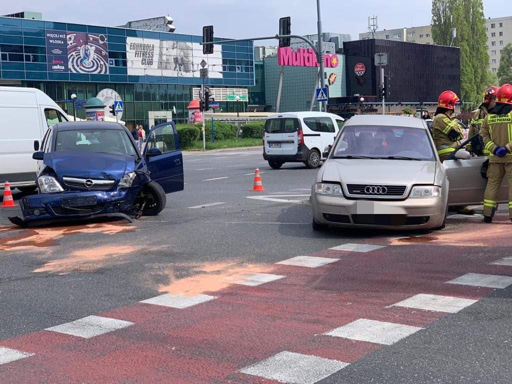 Na skrzyżowaniu al. KEN z Gandhi na Ursynowie doszło do zderzenia dwóch samochodów osobowych marki opel i audi. Po zderzeniu jedno z aut uderzyło w znaki. Nikomu nic się nie stało.