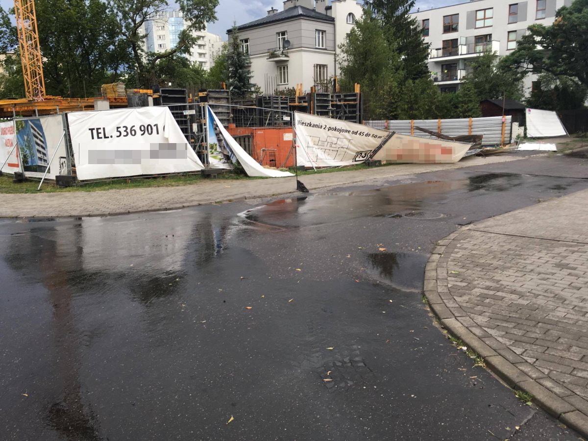 Porywisty wiatr nie oszczędził też deweloperów. Zabezpieczania budowy miejscami po prostu się połamały, jak np. na ul. Krypskiej. Rozbite były też wiaty rozstawione przez handlarzy na Nowym Świecie.
