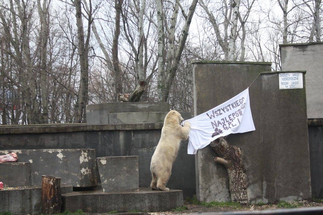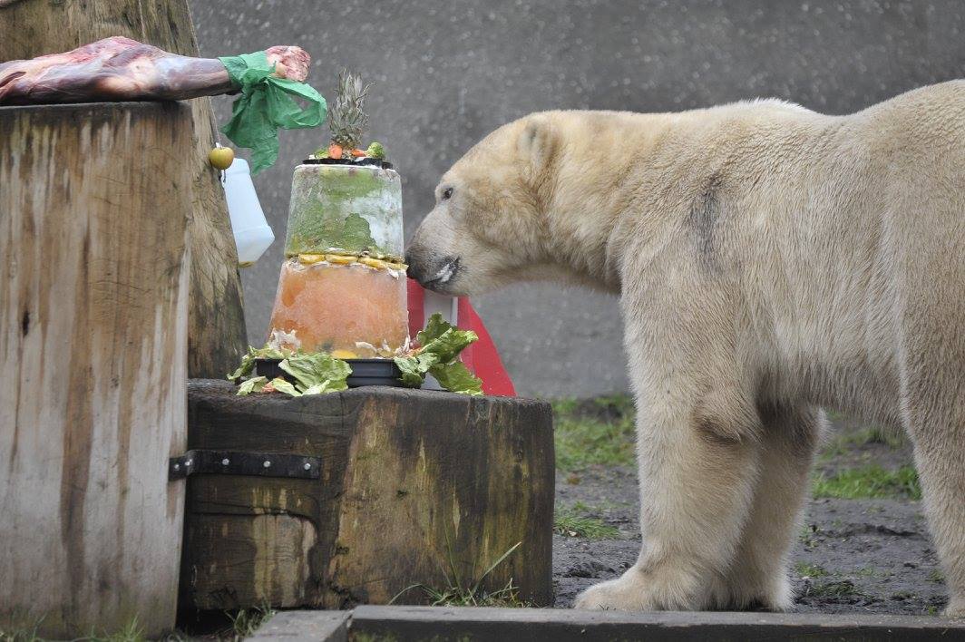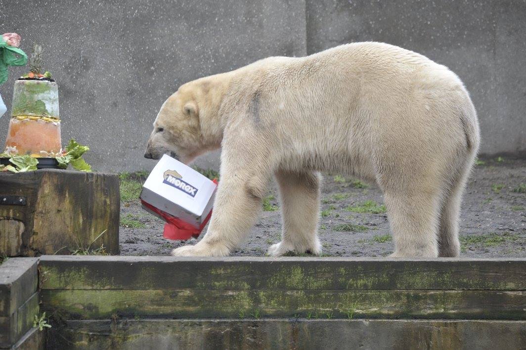 Wczoraj w warszawskim ogrodzie zoologicznym świętowano 5-te urodziny niedźwiedzi polarnych – urodzonych w Norymberdze Aleuta i Gregora. Uroczyste wręczenie tortu odbyło się o godzinie 12.00 przy ich wybiegu. Wszyscy, którzy przynieśli misiom podarki w postaci: słoika miodu, suszonych owoców jak morele, jabłka, gruszki, figi, daktyle czy rodzynki (niedźwiedzie nie lubią suszonych bananów) mogli wejść do południa do ZOO za darmo.