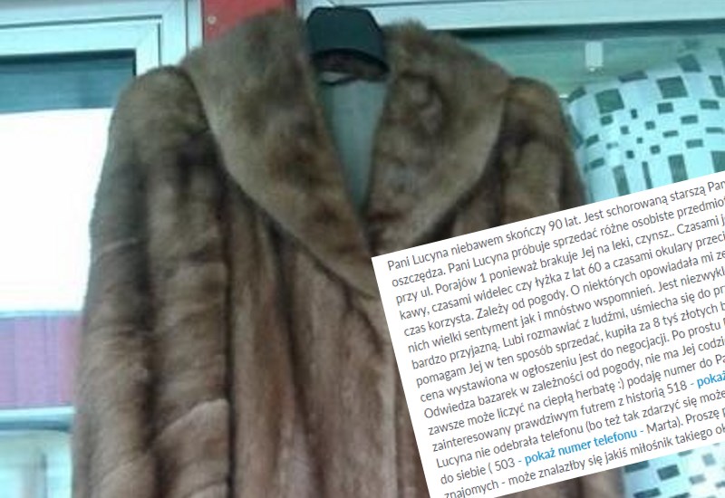 Jeżeli zainteresował Was los Pani Lucyny i chcecie zakupić futro, możecie to zrobić za pomocą platformy OLX: https://www.olx.pl/oferta/futro-z-norek-od-pani-lucyny-pieniadze-potrzebne-na-zycie-CID87-IDiUnxf.html#abc70b08a9. Jest tam też telefon zarówno do Pani Lucyny, jak i osoby, która wystawia futro.