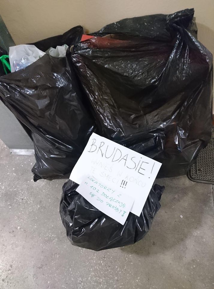 Jak widać problem z pozostawianiem śmieci na korytarzu jest wszechobecny.