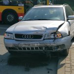 Na Głębockiej 13 doszło do zderzenia hondy z audi. Jedna osoba z audi trafiła do szpitala.