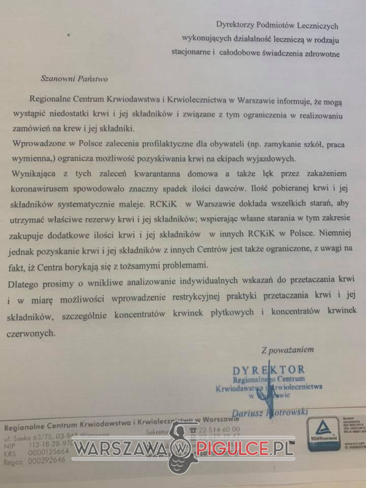 Kochani, taką informację dostaliśmy dziś ze stacji krwiodawstwa. Apel: JEŚLI JESTEŚ ZDROWY rusz się – zachowując wszystkie środki ostrożności – na ul. Saską i oddaj krew!” – pisze Szpital Praski w Warszawie.