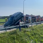 Na trasie S8 doszło do zderzenia czterech aut. Jedno auto wylądowało na drugim.