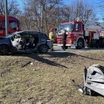 Na skrzyżowaniu Okulickiego z Armii Krajowej w Grodzisku Mazowieckim doszło do zderzenia samochodu osobowego marki Renault z pojazdem straży pożarnej marki volvo. Kierująca samochodem osobowym była zakleszczona w aucie. Nieprzytomna trafiła do szpitala.