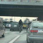Zdjęcie Czytelnik wykonał na wysokości trasy S2. Jak mówi cyklista robił slalom po ulicy między autami w kierunku Janek. Doprowadzał do niebezpiecznych sytuacji.