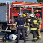 Na krajowej „7” w miejscowości Palmiry w kierunku Gdańska doszło do zderzenia motocyklisty z samochodem osobowym marki kia. Do szpitala trafiły dwie osoby; kierująca autem osobowym oraz kierujący jednośladem.