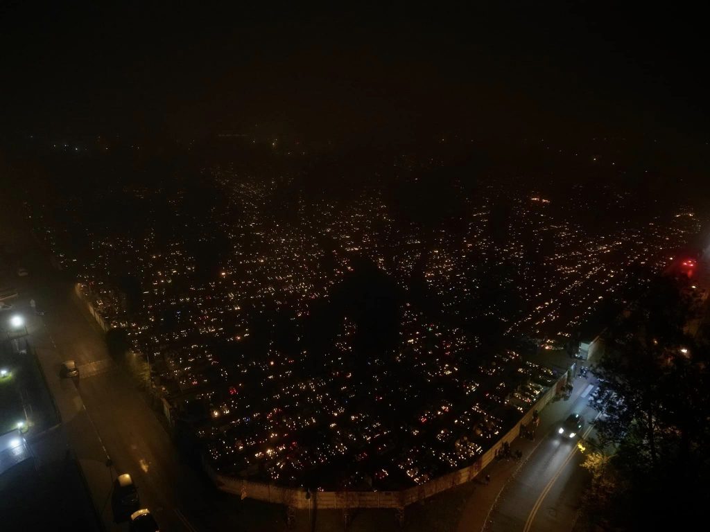 Magicznie jak co roku. Cmentarz po zmroku z lotu ptaka [ZDJĘCIA]