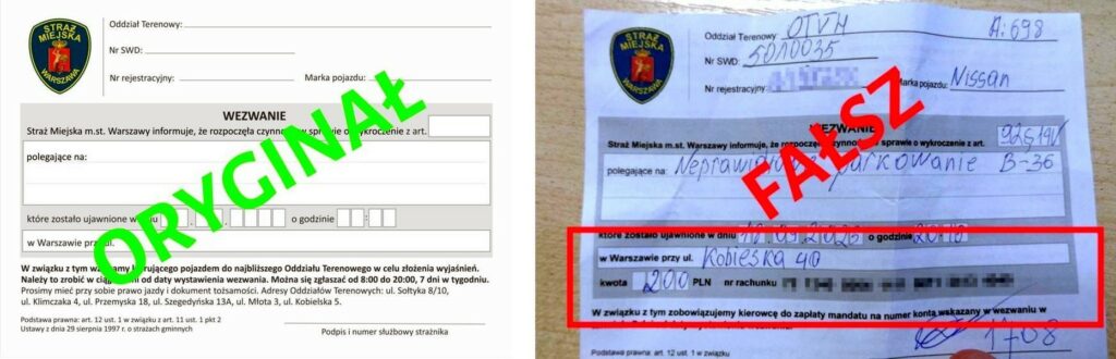 Choć fałszywe wezwania są łudząco podobne do tych wydawanych przez straż miejską stolicy, można je odróżnić. Przede wszystkim prawdziwe wezwania nie podają ani numeru konta, ani kwoty mandatu. Zamiast tego zachęcają do odwiedzenia siedziby Straży Miejskiej w celu wyjaśnienia sytuacji.