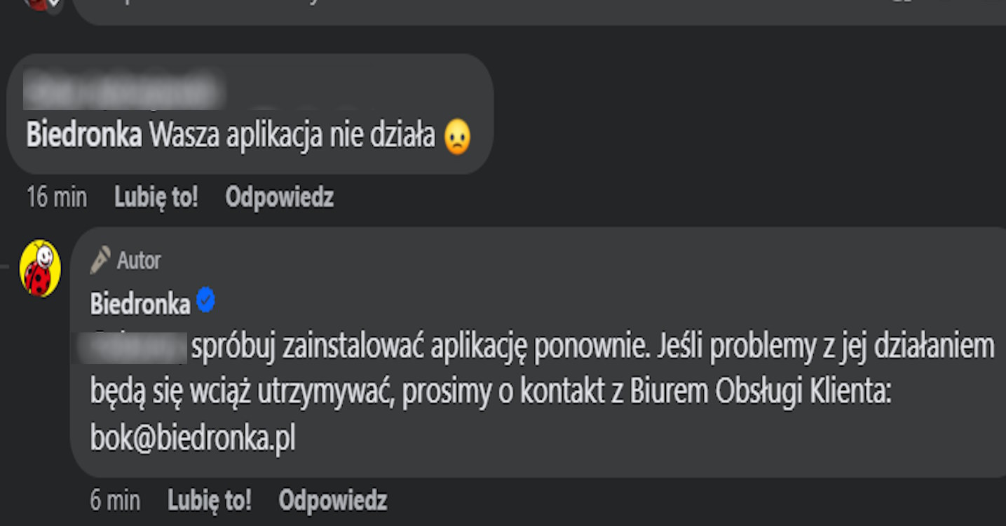 Sieć sklepów Biedronka jest znana ze swojego podejścia skoncentrowanego na kliencie i szybkiego reagowania na wszelkie problemy. Tym razem również nie zawiedli, wykazując gotowość do pomocy i zapewnienia, że zakupy w ich sieci będą nadal wygodne i przystępne dzięki funkcjonalnej aplikacji Moja Biedronka.