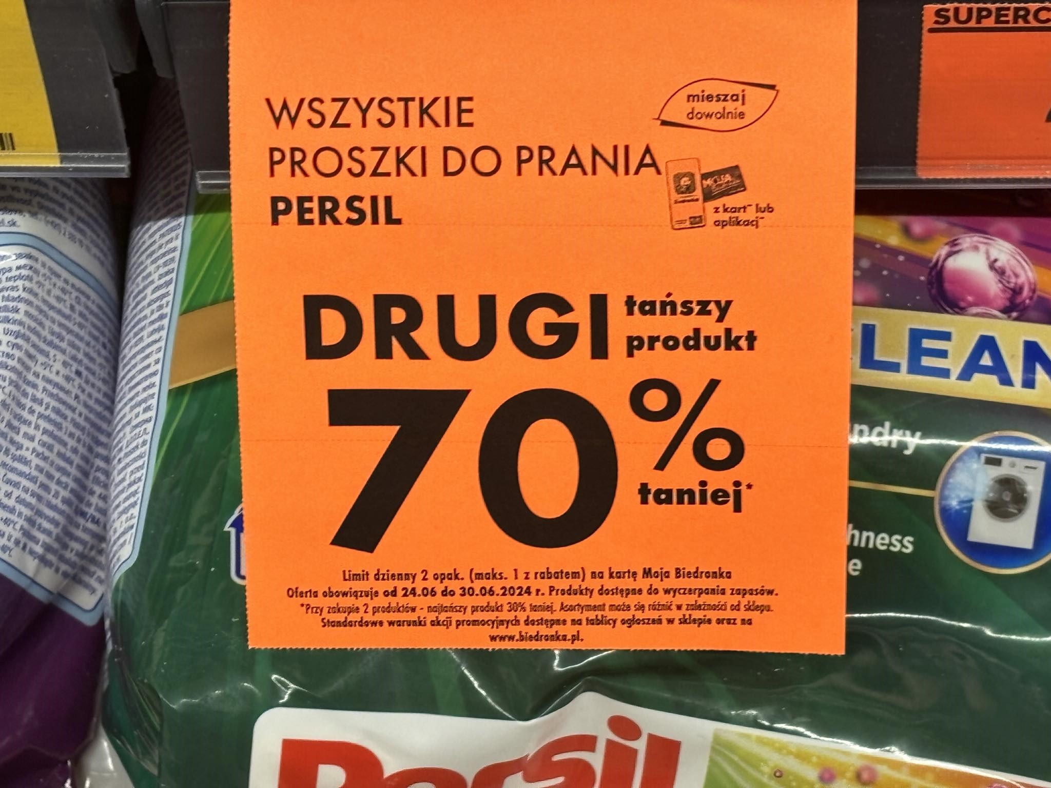 W tych dniach w sieci supermarketów Biedronka trwa niezwykła promocja na proszki do prania marki Persil. Od 24 czerwca do końca miesiąca, klienci mogą skorzystać z wyjątkowej oferty, w której zakup drugiego produktu obniżony jest aż o 70%! Jest to idealna okazja dla każdego, kto chce zaopatrzyć się w wysokiej jakości środki piorące za ułamek ceny.