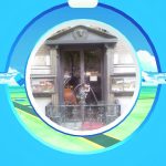To co widzimy na ekranie do tzw. Pokestopy, czyli miejsca, w których zdobywany gadżety do gry. Na mapie widzimy je jako niebieskie romby. Widzimy je, gdy zbliżymy się do danego punktu na odleglość 1-1.5km By móc skorzystać z Pokestopu, trzeba zbliżyć się do niego na odległość 100-150 metrów. Po zbliżeniu pokestop stanie się dla nas aktywny. WIkona Pokestopu zmienia się wówczas w dysk. Gdy na niego klikniemy zakręci się jak moneta i wyskakują przydatne przedmiotu – pokeballe, eliksiry i inne. Z jednego pokestopu można skorzystać raz na 5 minut.