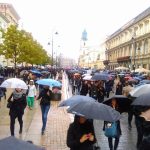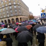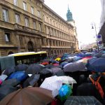 Czarny marsz idzie ulicami stolicy. Protestujący mijają własnie ulicę Świętokrzyską i wchodzą na Krakowskie Przedmieście. Nasz reporter podaje, że ma miejscu idzie kilkadziesiąt tysięcy ludzi. Tłum skanduje „Precz z Kaczorem!”.