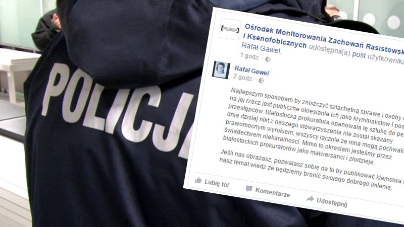 Prokuratura weszła ostatnio do warszawskiego Ośrodka Monitorowania Zachowań Rasistowskich i Ksenofobicznych. Przeszukano także domy działaczy, ale jak na razie nikt nie usłyszał konkretnych zarzutów. Wywołało to lawinę komentarzy. Prokuratura w Białymstoku, która nadzoruje śledztwo wydała w tej sprawie komunikat.