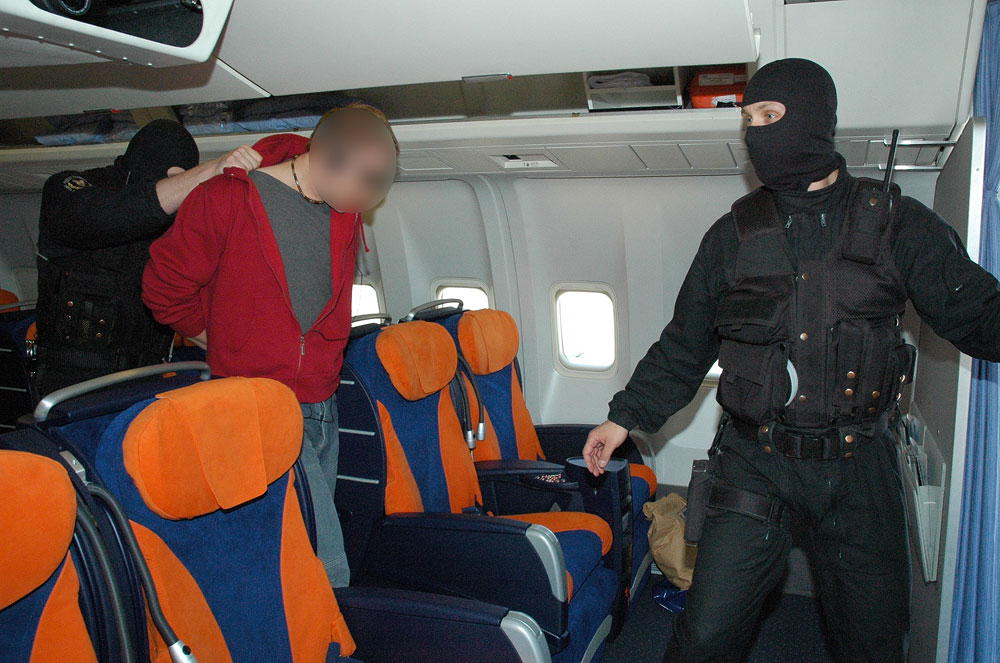 Do pierwszego incydentu doszło w sobotę po otrzymaniu informacji, że na pokładzie samolotu linii Wizzair, lot z Glasgow znajduje się agresywny pasażer. Po wylądowaniu samolotu załoga wskazała funkcjonariuszom SG młodego mężczyznę, który według świadków podczas lotu nie wykonywał poleceń personelu, zachowywał się agresywnie, używał słów wulgarnych, zakłócał porządek, a po wylądowaniu utrudniał innym pasażerom opuszczenie pokładu. Mężczyzna został wezwany do opuszczenia samolotu i pouczony o możliwości użycia wobec niego środków przymusu bezpośredniego w razie nie wykonywania wydanych poleceń. Pasażer dobrowolnie opuścił pokład, jednak przed wejściem do samochodu, agresja u podróżnego wróciła, dlatego też zastosowano śpb w postaci technik obezwładniania oraz kajdanki. Jak się okazało, mężczyzna był pod wpływem alkoholu. Do podróżnego został wezwany lekarz, który po przeprowadzeniu badania wystawił skierowanie do Stołecznego Ośrodka dla Osób Nietrzeźwych. Za wykroczenie określone w art. 210 ust. 1 pkt 9 Ustawy Prawo Lotnicze 27–letniego Polaka, czeka mandat karny w wysokości 500 złotych.