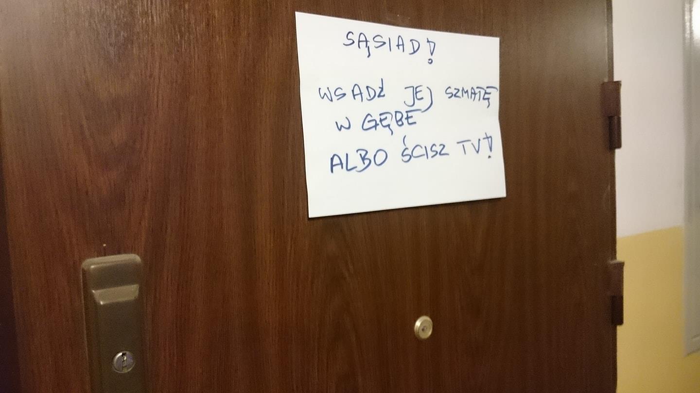 Moda na kartki na drzwiach? Tym razem z Targówka. Jedni się śmieją, inni krytykują.