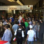 Tłumy ludzi wracają z przemówienia prezydenta Trumpa na Placu Krasińskich. Stacja Ratusz Arsenał przeżywa prawdziwe oblężenie! Niemal niemożliwe jest dostanie się na peron.