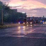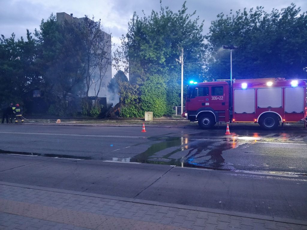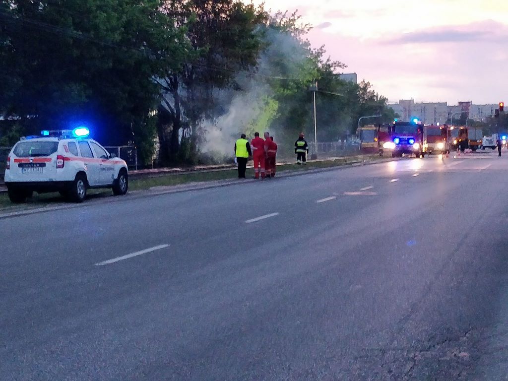 Policja zablokowała ruch na Broniewskiego i skrzyżowanie Broniewskiego i Rudnickiego. Nie jeżdżą samochody, wstrzymany jest ruch tramwajowy. Pożar jest opanowany, ale jeszcze nie ugaszony.