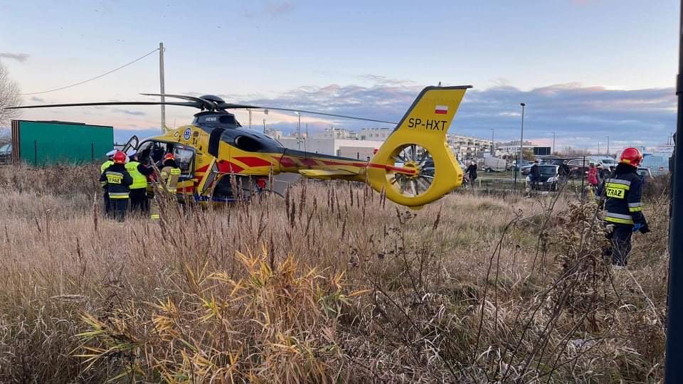 Akcja ratunkowa na Białołęce. Dostawca pizzy zderzył się z autem. Na miejscu śmigłowiec LPR