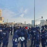 Większość osób spięta jest ze sobą kajdankami, niektórzy przykleili się do asfaltu. Z tego też powodu na miejsce udała się straż pożarna oraz duże siły policyjne.