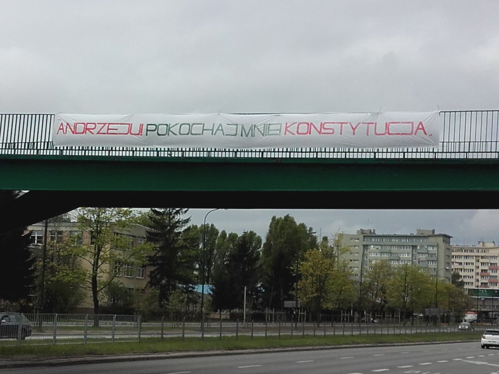 „Andrzeju! Pokochaj mnie! Konstytucja”. Kto umieścił transparent nad ruchliwą ulicą?