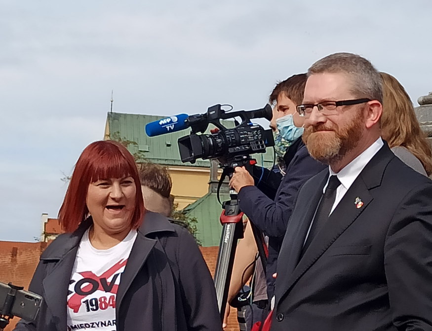 O godzinie 12:00 na placu zamkowym rozpoczęło się zgromadzenie osób, które nie wierzą w pandemię. Na miejscu są przedstawiciele różnych środowisk m.in. Paweł Tanajno czy Justyna Socha ze StopNop.