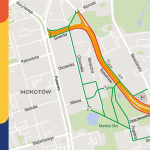 Rowerzyści powinni pamiętać, że nieczynny jest pas zarezerwowany dla nich na ulicy Spacerowej. Aby dojechać do Puławskiej, powinni kierować się ulicami Belwederską i Bagatela.