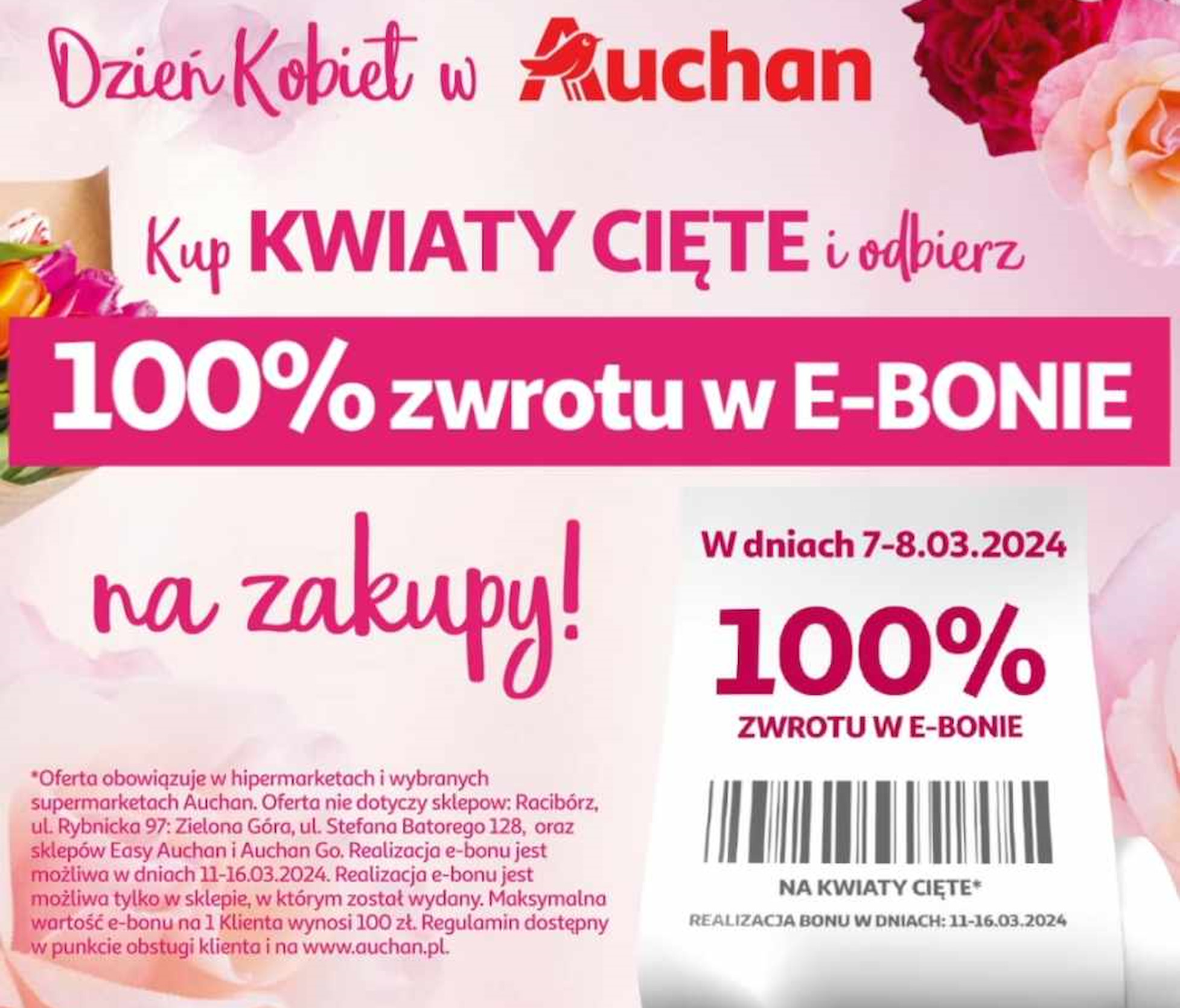 Auchan świętuje Dzień Kobiet z niespotykaną ofertą. 100% zwrotu na kwiaty cięte w formie e-bonu!