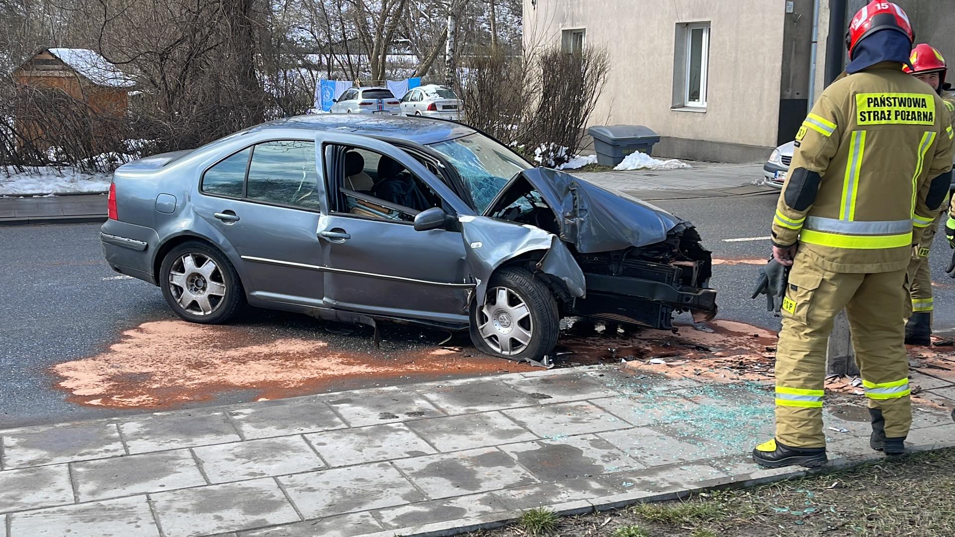 Na ulicy Zabranieckiej 33 na Targówku kierująca samochodem osobowym marki volkswagen wjechała w betonowy słup latarni. Nikomu nic się nie stało. Na miejscu pracowali strażacy oraz policja.