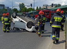Po godzinie 14:00 doszło do zderzenia dwóch samochodów osobowych. Jeden z pojazdów leży przewrócony na jezdni. Drugi z uczestników wypadku oddalił się z miejsca i jest poszukiwany przez