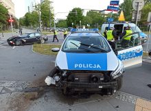 Na skrzyżowaniu ulicy Grzybowskiej i Towarowej doszło do zderzenia samochodu osobowego marki BMW z radiowozem policyjnym KIA. Adam Józefaciuk
