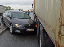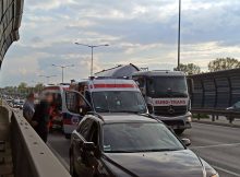 Na trasie S8, nad Wisłostradą, samochód osobowy marki Skoda zderzył się z tirem. Adam Józefaciuk