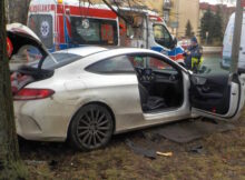 Kobieta kierująca mercedesem straciła kontrolę nad pojazdem, przecinając znak drogowy i kończąc jazdę na drzewie po ruszeniu ze świateł na alei Krakowskiej. Straż miejska natychmiast udzieliła jej wsparcia