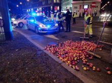 Trwa protest rolników w Centrum Warszawy. Na pl. Unii Lubelskiej rozsypali oni na ulicę jabłka całkowicie blokując przejazd. Jerzy Sienkiewicz
