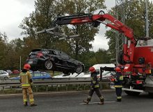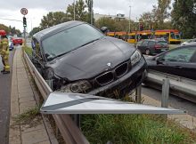 Samochód marki BMW jadący Marymoncką z niewiadomych przyczyn wjechał w barierki. Właśnie przyjechała specjalna grupa ratownictwa technicznego JRG 10, która pomaga w wydostaniu się pojazdu. Katarzyna Bąk
