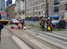 Zderzenie miało miejsce na placu Starynkiewicza. Dwa samochody osobowe zderzyły się ze sobą, jedno z nich wylądowało na słupie trakcyjny i potrąciło pieszego. Została ranna jedna osoba. Wstrzymano