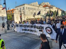 Narodowcy ruszyli Krakowskim Przedmieściem mimo zakazu wydanego przez ratusz i sąd. Na jednym z transparentów pojawił się przekreślony znak LGBT. Katarzyna Bąk