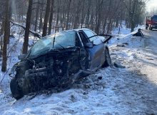 Do wypadku doszło na drodze wojewódzkiej 631, na wysokości Marek. Czołowo zderzyły się ze sobą dwa pojazdy. Dwie osoby zostały ranne, jedna była zakleszczona w samochodzie. Występują ogromne