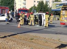 Na skrzyżowaniu Powstańców Śląskich z Wrocławską na Bemowie doszło do zderzenia dwóch pojazdów marki mazda i toyota oraz autobusu miejskiego. Po zderzeniu toyota wylądowała na boku. Łukasz Kowalski