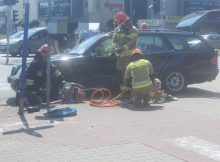 Na skrzyżowaniu Sobieskiego z Świętego Bonifacego na Mokotowie doszło do zderzenia dwóch samochodów osobowych marki toyota i mercedes. Jedna osoba została uwięziona w aucie. Strażacy przy użyciu sprzętu
