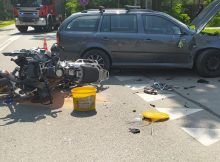 Na skrzyżowaniu al. Piłsudskiego z Paderewskiego w Sulejówku (pow. miński) doszło do zderzenia samochodu osobowego z motocyklistą. Kierujący jednośladem z obrażeniami ciała trafił do szpitala. Ulica jest całkowicie