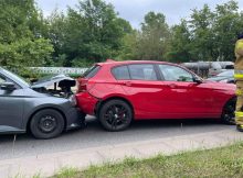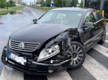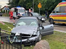 Na skrzyżowaniu Radzymińskiej z Wolności w Ząbkach doszło do zderzenia dwóch samochodów osobowych marki BMW M4 Competition i audi. Po zderzeniu BMW wjechało w sygnalizator świetlny, który wbił