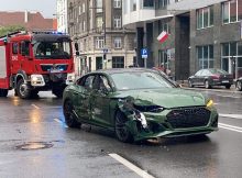 Na ulicy Kruczej 8 w Śródmieściu kierujący sportowym audi RS5 za ponad pół miliona złotych rozbił auto na kontenerach śmietnikowych. Jedna osoba trafiła do szpitala. Łukasz Kowalski
