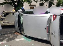 Na ulicy Andersa 23 w Śródmieściu kierujący Renault z wypożyczalni wjechał w zaparkowaną taksówkę. Auto z wypożyczalni przewróciło się na bok. Jedna osoba była badana w karetce pogotowia.