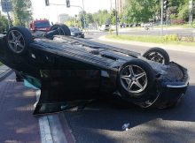 Na skrzyżowaniu Rosoła z Jeżewskiego na Ursynowie doszło do zderzenia trzech samochodów osobowych marki bmw, volvo i mercedes. Po zderzeniu mercedes dachował. Jedna osoba była badana w karetce