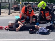 Na ulicy Gwiaździstej na Żoliborzu na chodniku doszło wypadku z kobietą na elektrycznej hulajnodze, która podczas hamowania się wywróciła i uderzyła twarzą o chodnik. Kobieta z obrażeniami ciała