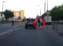 Nagranie dostaliśmy od Pana Marcina. Do zdarzenia doszło na ulicy Świderskiej na Białołęce. Wzdłuż ulicy w kierunku, który jechał rowerzysta jest ścieżka rowerowa. Jednak cyklista postanowił jechać ulicą