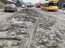 Przy skrzyżowaniu Wolskiej z al. Prymasa Tysiąclecia z wywrotki na jezdnię wysypał się beton. Na miejscu pracują służby, które usuwają towar z drogi. Łukasz Kowalski