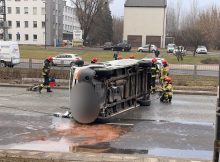 W al. Prymasa Tysiąclecia przed rondem Zesłańców Syberyjskich doszło do zderzenia trzech pojazdów marki Renault, Dacia i kia. Bus po zderzeniu wywrócił się na bok, przewoził butle z